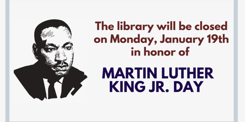 The Library will be closed on Monday, January 19th in honor of Martin Luther King Jr. Day.